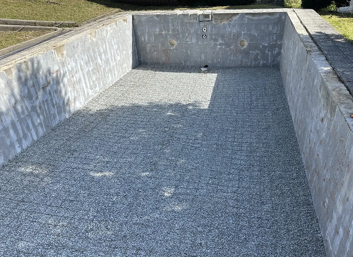 O projeto incluiu a modernização da estrutura, a aplicação de tela para revestimento, garantindo maior impermeabilização e acabamento estético, bem como a instalação do respetivo sistema de filtração e motor, assegurando uma circulação e qualidade de água eficientes.